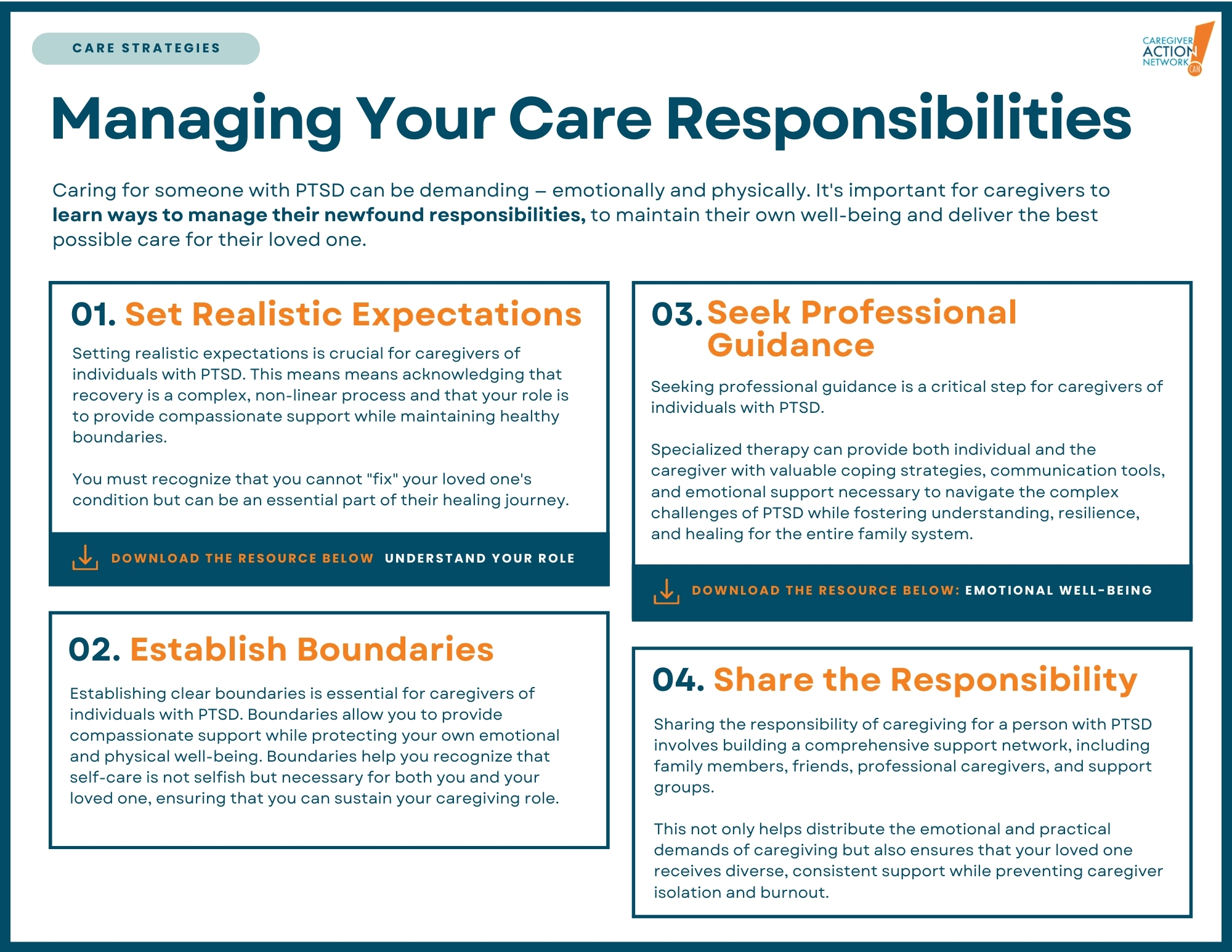 That’s why Caregiver Action Network has created a PTSD guide—to give caregivers practical advice and tools to provide the best care possible.